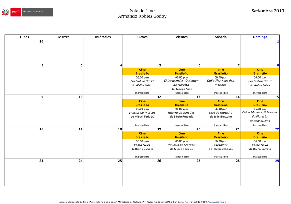 Programación de Setiembre 2013 en la Sala de Cine Armando Robles Godoy