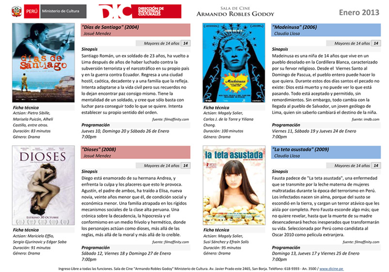 Programación Sala de Cine ARG – Enero 2013