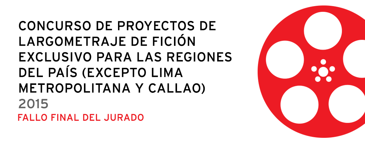 La Dirección del Audiovisual, la Fonografía y los Nuevos Medios del Ministerio de Cultura publica la RD N° 290-2015-DGIA-VMPCIC/MC que comunica el fallo final del Concurso de proyectos de largometraje de ficción exclusivo para las regiones del país (excepto Lima Metropolitana y Callao) 2015.