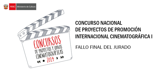 La Dirección del Audiovisual, la Fonografía y los Nuevos Medios del Ministerio de Cultura publica la RD N° 155-2014-DGIA-VMPCIC/MC  que comunica el fallo final del Concurso nacional de proyectos de promoción internacional cinematográfica I.
