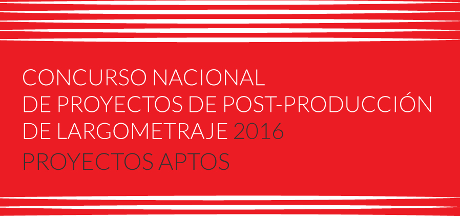 La Resolución Directoral N°016-2016-DAFO-DGIA-VMPCIC/MC de fecha 28 de junio del presente, publicada en el portal institucional del Ministerio de Cultura, consignó los expedientes aptos para participar en el Concurso nacional de proyectos de Post-Producción de largometraje - 2016.