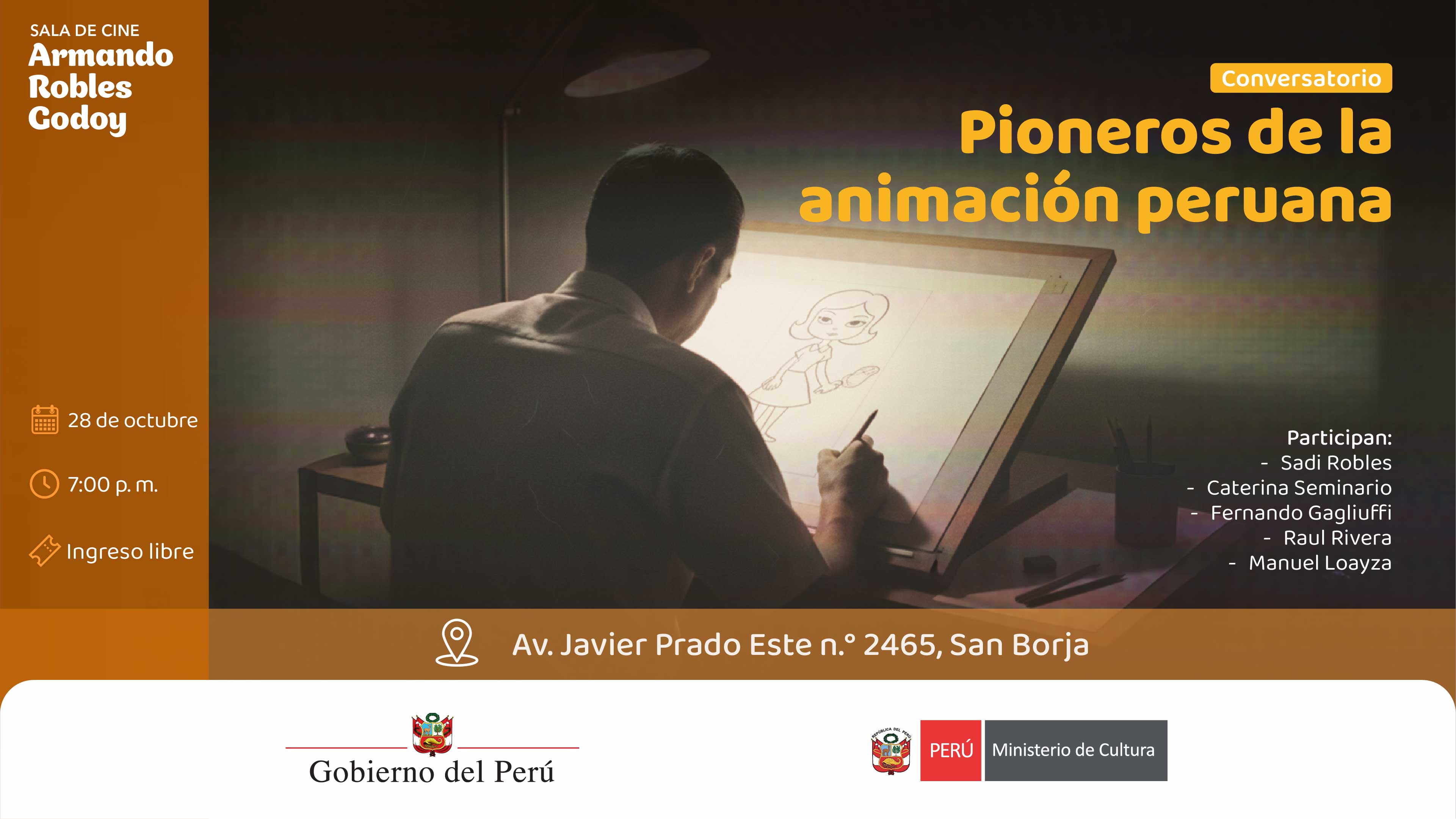 En el marco de las actividades conmemorativas por el Día Mundial del Patrimonio Audiovisual el Ministerio de Cultura del Perú, presenta el conversatorio “Pioneros de la animación peruana”, este martes 28 de octubre a las 7:00 p. m. en la sala Armano Robles Godoy.