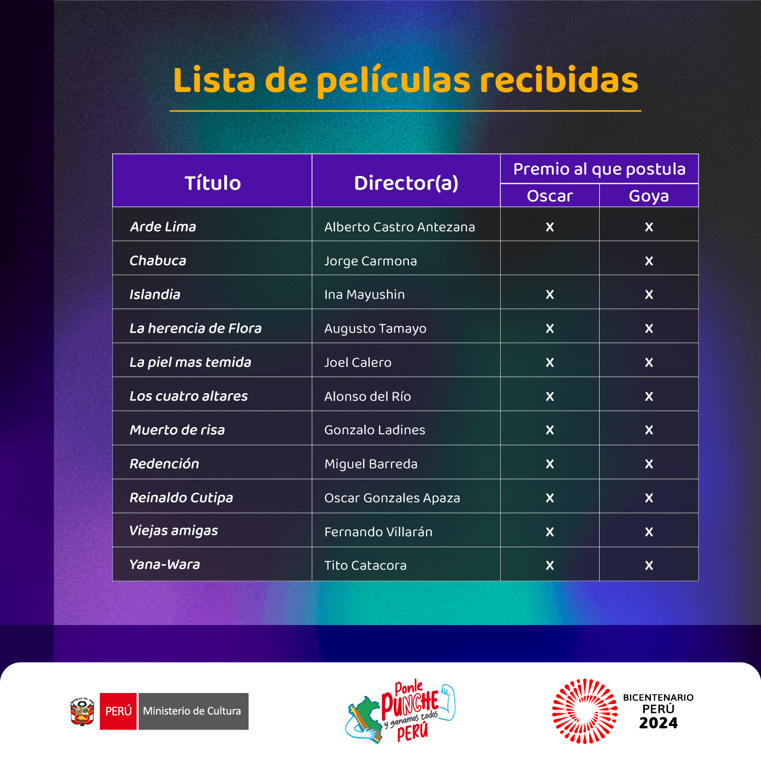 El Ministerio de Cultura del Perú anuncia que inicia su proceso de coordinación para que la ciudadanía civil organizada y profesionales del sector cinematográfico y audiovisual seleccionen las candidaturas peruanas a los 39° Premios Goya y a los 97° Premios Óscar.