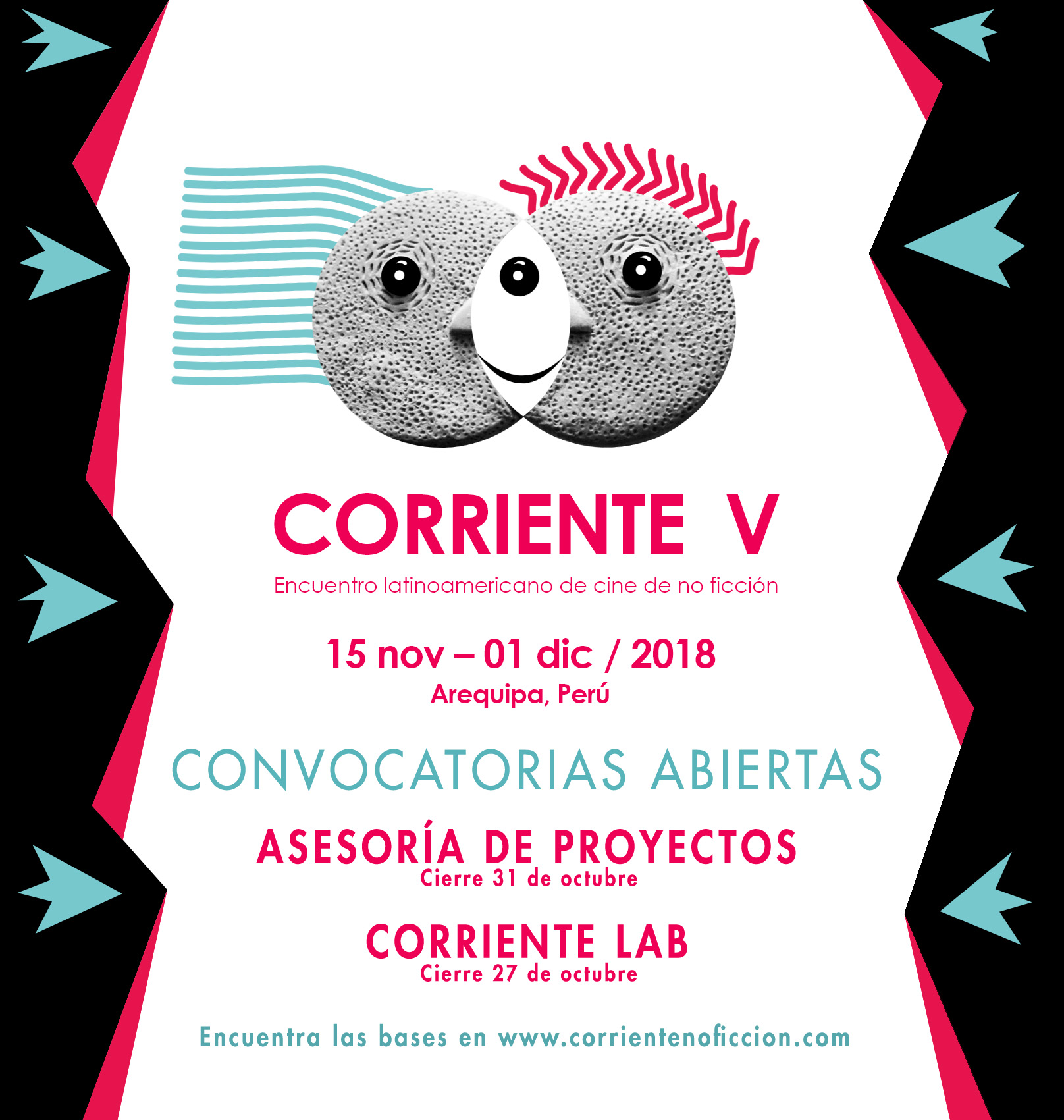 Se encuentra abierta la convocatoria para participar del laboratorio y asesorías de la quinta edición de "CORRIENTE: ENCUENTRO LATINOAMERICANO DE CINE DE NO FICCIÓN", a realizarse del 26 de noviembre al 01 de diciembre del presente año en la ciudad de Arequipa, Perú.