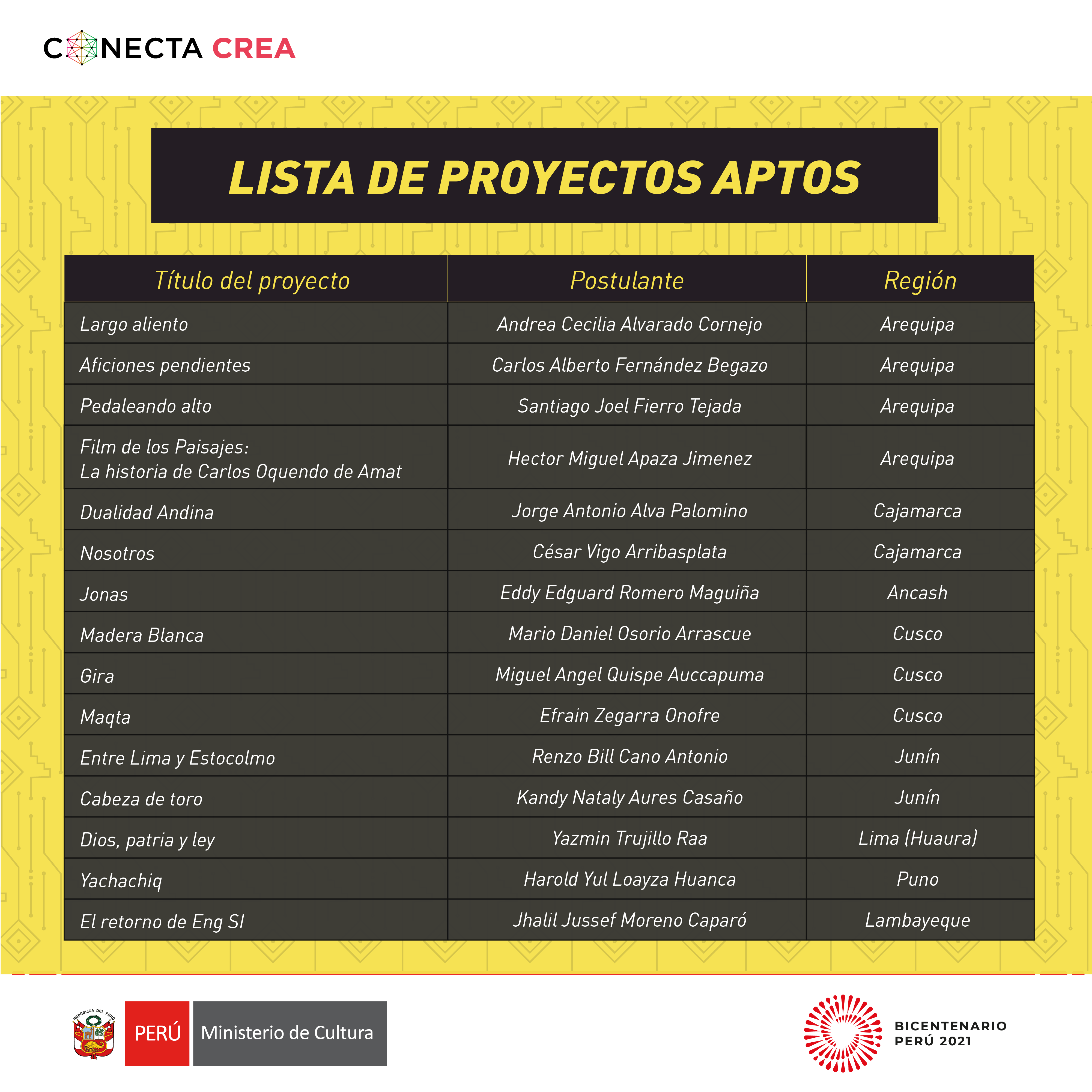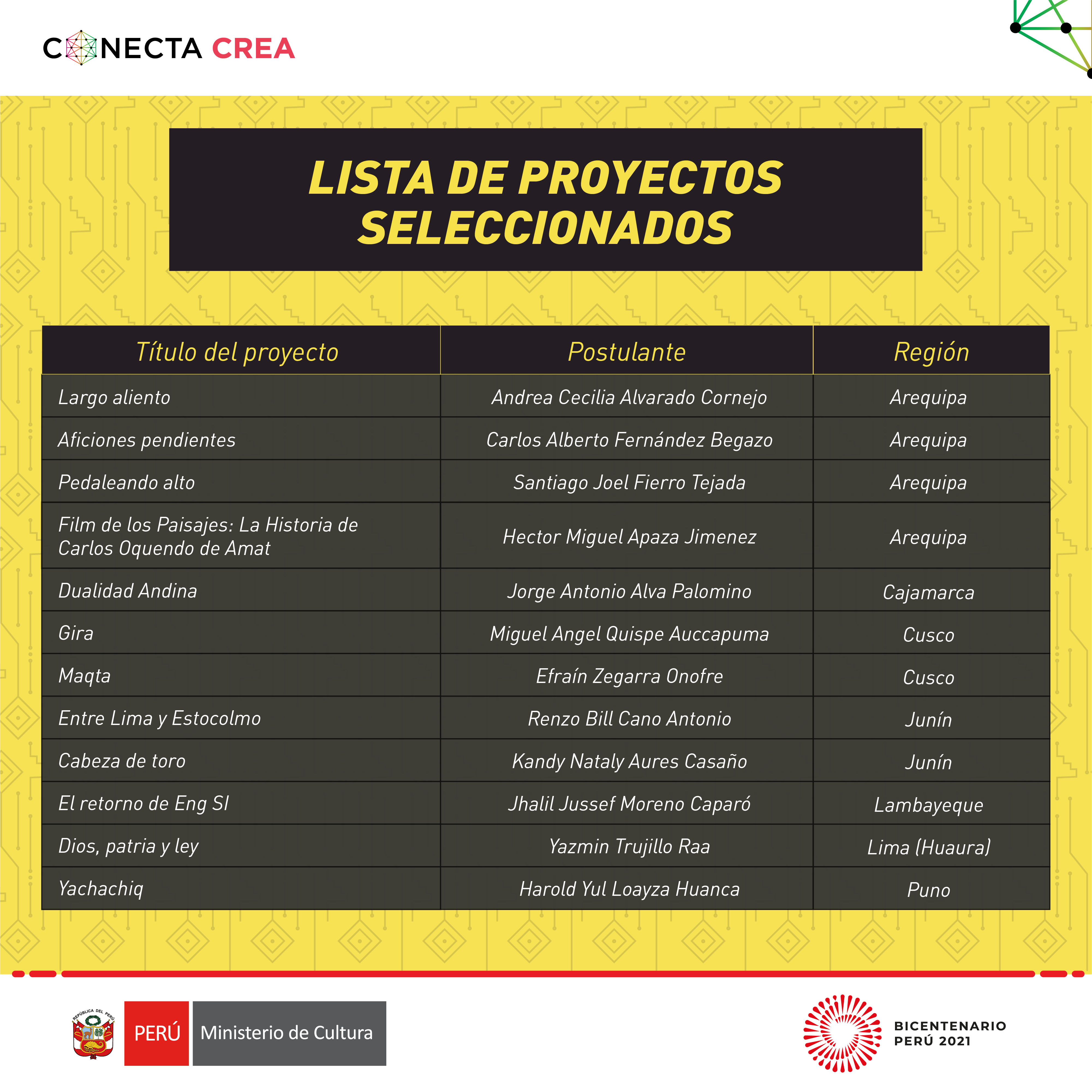 En el marco del Programa CONECTA, el Ministerio de Cultura del Perú a través de la Dirección del Audiovisual, la Fonografía y los Nuevos Medios (DAFO) convoca al “Taller de proyectos cinematográficos – Desarrollo de guion (modalidad virtual) 2021”, que se llevará a cabo del 21 de junio al 9 de julio del presente año.