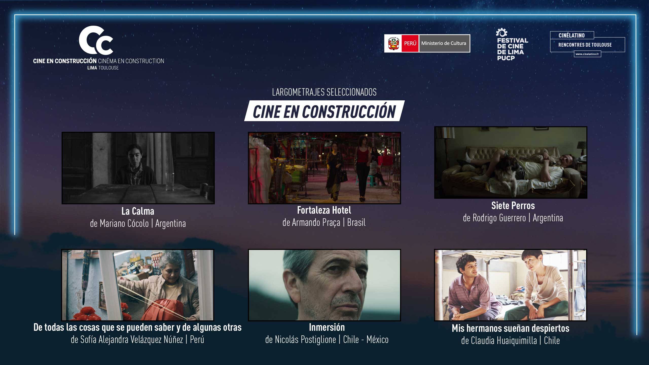 Luego de una cuidadosa evaluación de 256 películas presentadas a la convocatoria, los comités en Lima y Toulouse han seleccionado seis largometrajes para la competencia de Cine en Construcción - Lima: