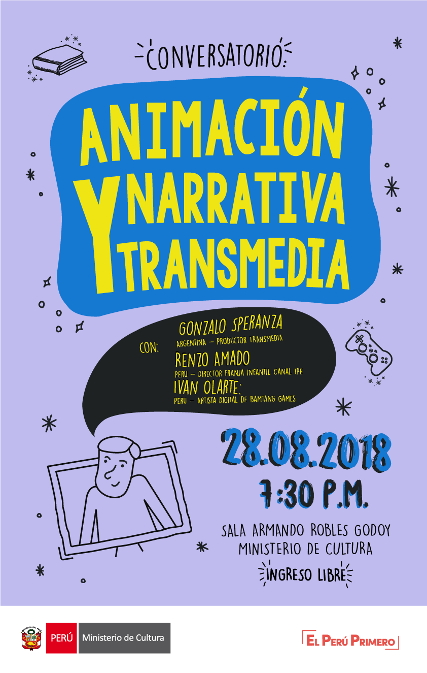 El Ministerio de Cultura, a través de la Dirección del Audiovisual, la Fonografía y los Nuevos Medios (DAFO), presenta el Encuentro Formativo “Animación y narrativa transmedia” conversatorio que dará a conocer las posibilidades creativas de la narración de contenido animado a través de distintas plataformas y las características de cada una de ellas.